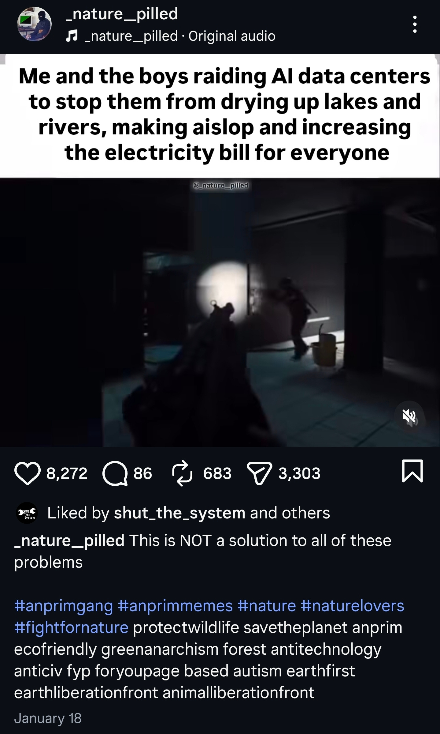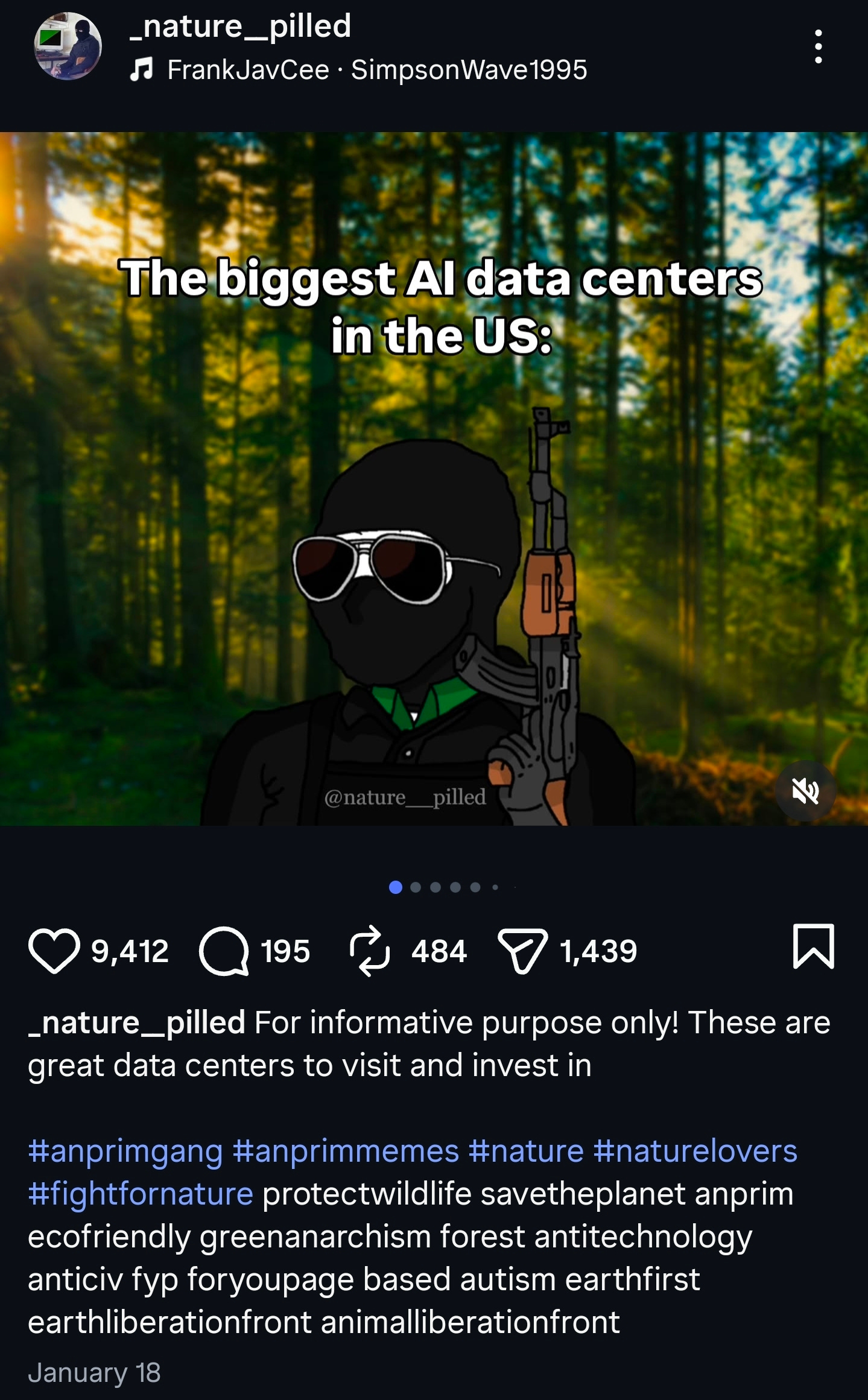 The suspect, a 26-year-old man, has not yet been named, but it has been confirmed that he operated the popular Instagram far-left account “_nature__pilled.” He used the account to fundraise and disseminate instructions on how to create homemade weapons and explosives, alongside lists of targets that included U.S.-based data centers.