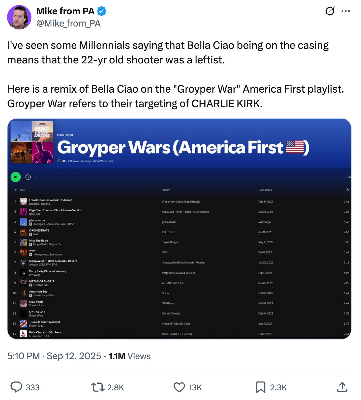 In 2019, Washington state Antifa gunman Willem van Spronsen wrapped up his manifesto with “Bella ciao” before attacking an ICE facility in Tacoma with a rifle and incendiary devices. He was shot dead while trying to ignite a propane tank close to the building and has since been glorified by Antifa as a hero and martyr.