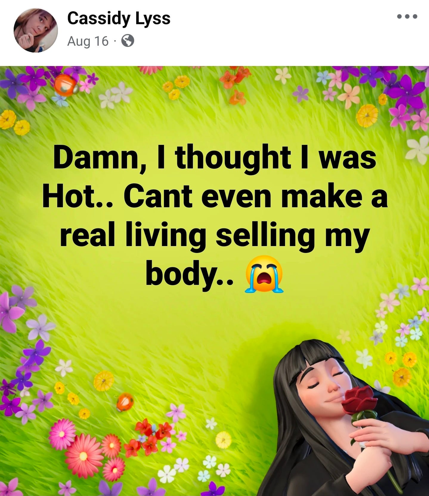 “Damn, I thought I was Hot..Cant [sic] even make a real living selling my body,” he complained in another post.