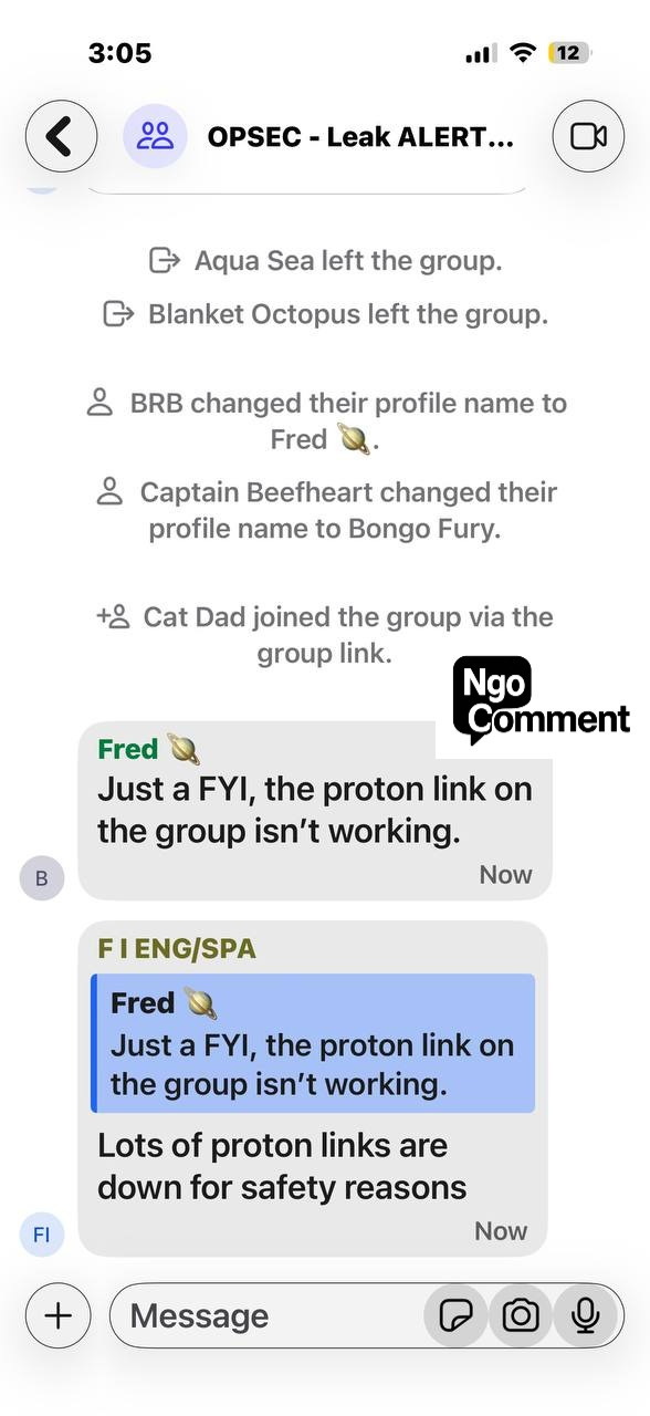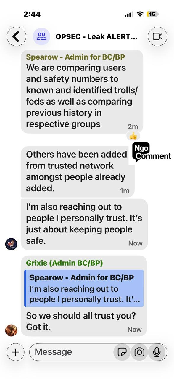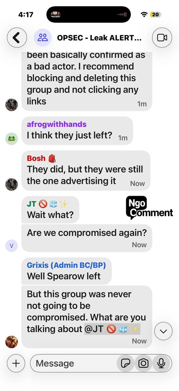 Soon after, users accused one group of being fully compromised and urged members to delete the chat entirely.