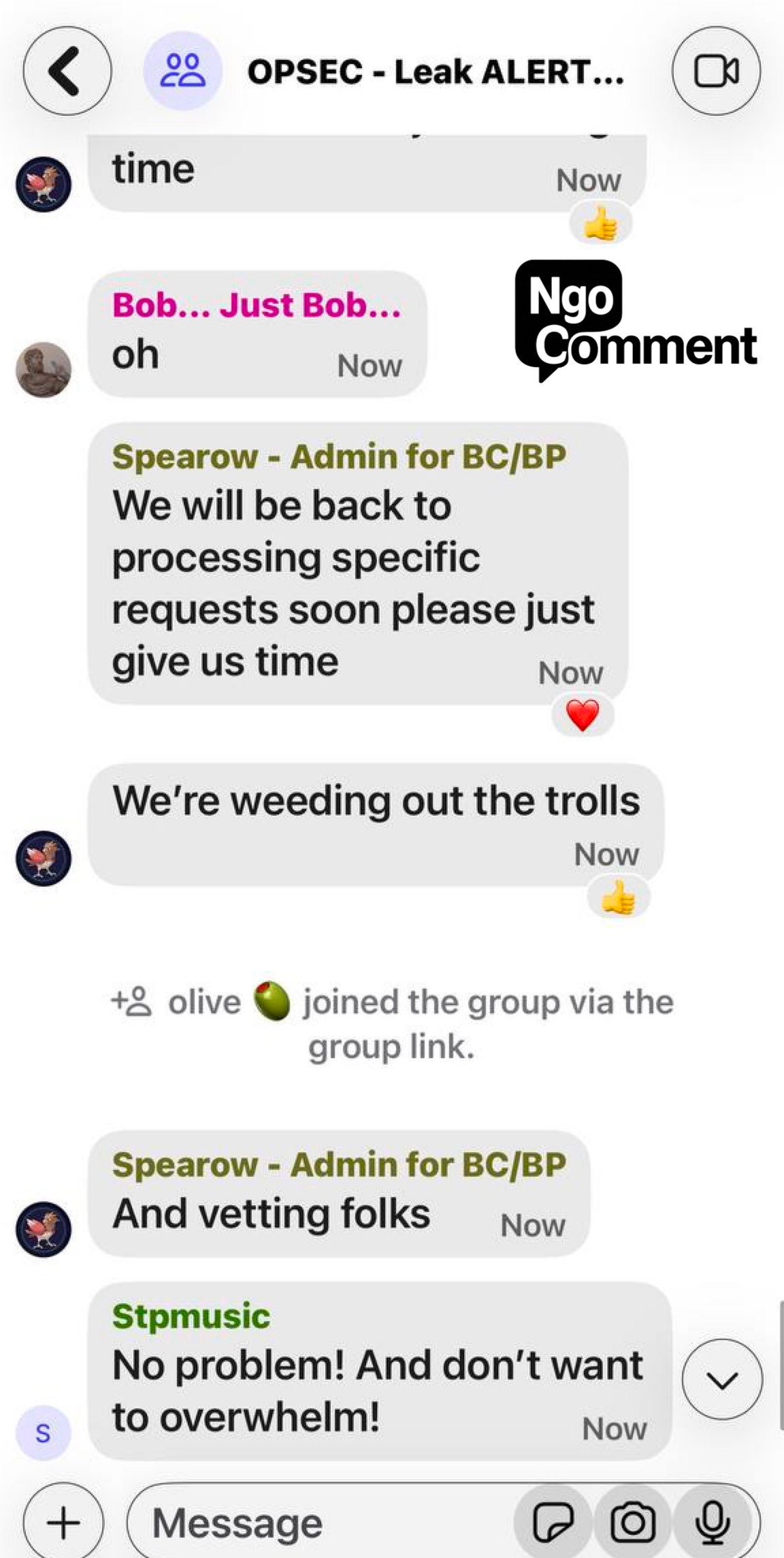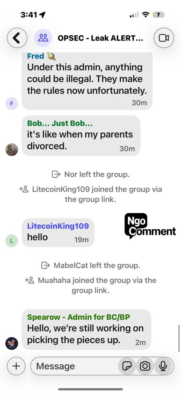My time inside these chats was limited, but it offered insight into the internal dynamics of these groups. Participants are deeply paranoid right now and increasingly fractured. Many are retreating into smaller, supposedly vetted cells — classic behavior consistent with clandestine, criminal organizing.