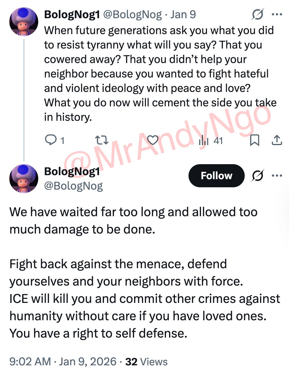 ”ICE will kill you and commit other crimes against humanity without care if you have loved ones,” he posted on Jan. 9. “You have a right to self defense.” Coleman also shared antifa-style content comparing Tesla to a Nazi company and urging people to kill “Nazis.”