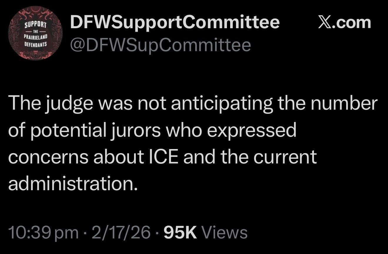 Judge Pittman found her clothing could prejudice jurors. His ruling came on the first day of jury selection in Fort Worth, weeks after nine federal defendants were indicted on charges stemming from a July 4, 2025 shooting ambush on the Prairieland ICE facility in Alvarado, Texas. A local police officer responding to the riot was shot in the neck. One of the defendants escaped from the scene, leading to a Texas-most-wanted manhunt for almost two weeks.