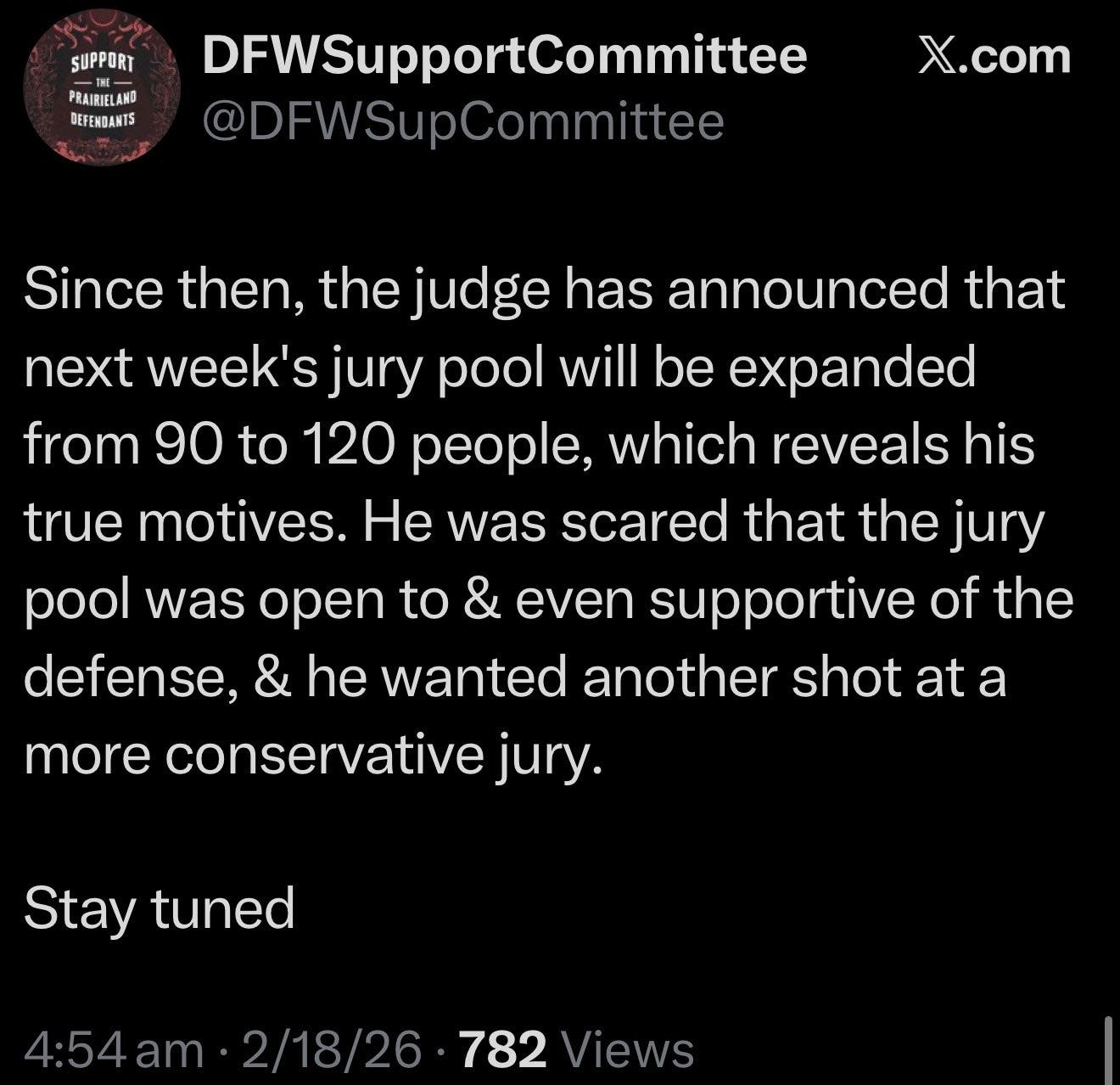 If you want to attend the trial starting on Feb. 23, and I strongly encourage you to, it’s being held at 501 W 10th Street, Fort Worth, Texas, 76102. This case about Antifa terrorism will not get national media attention.