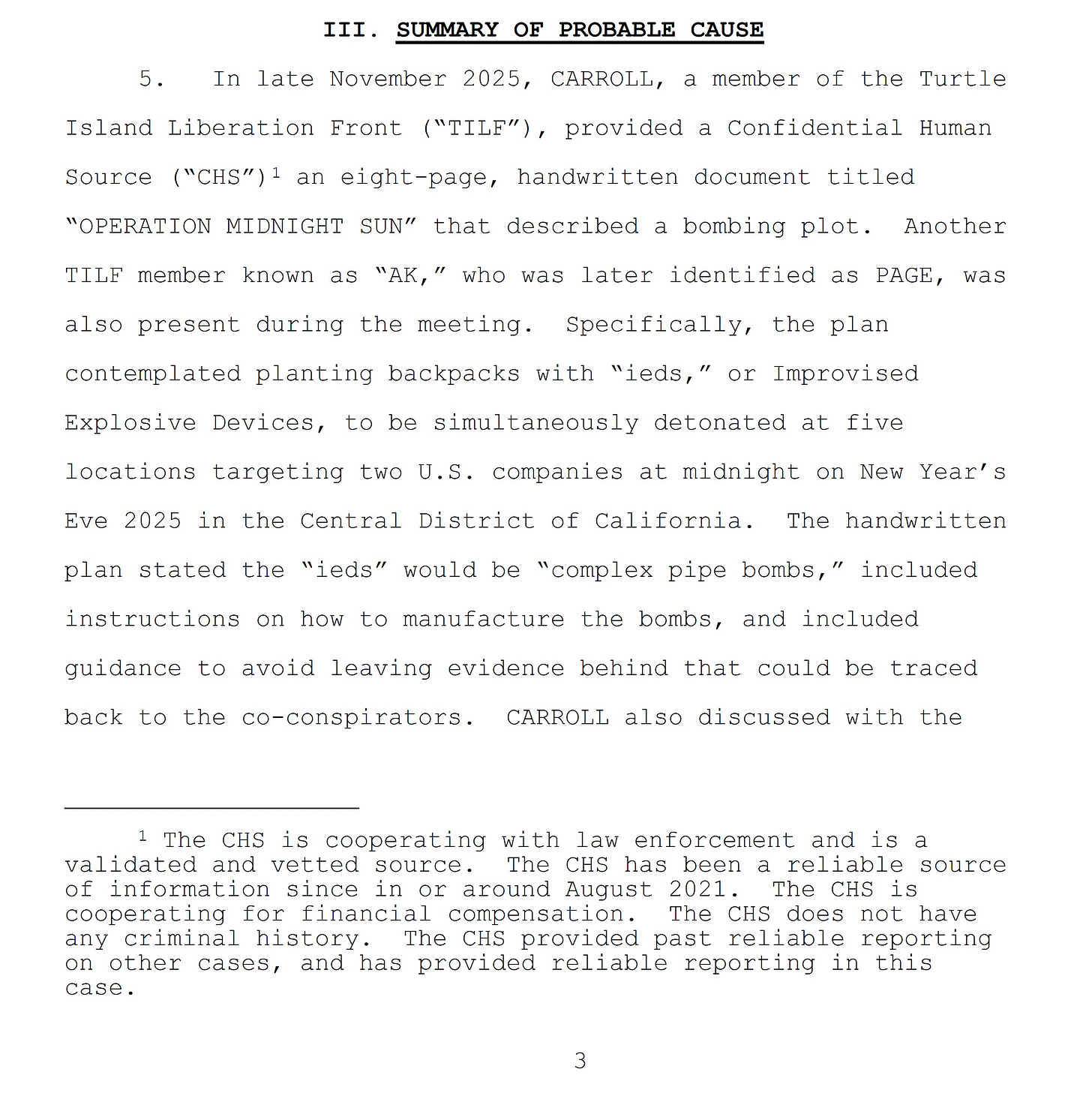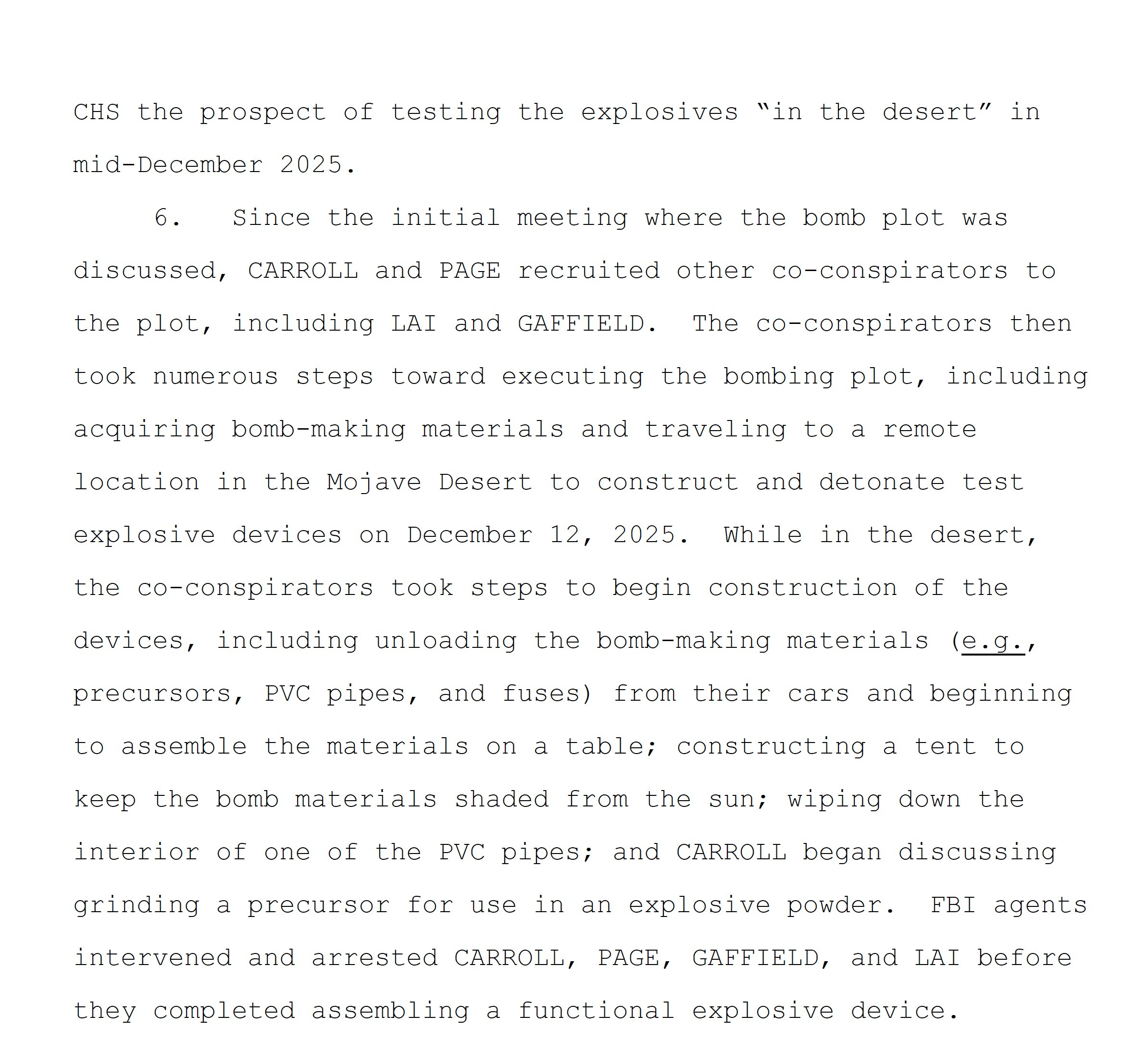 The four arrested in California are Audrey Illene Carroll, Zachary Aaron Page, who is trans and asked to be jailed with women, Tina Lai and Dante Gaffield. They were arrested in a desert outside Los Angeles while allegedly testing their explosives.