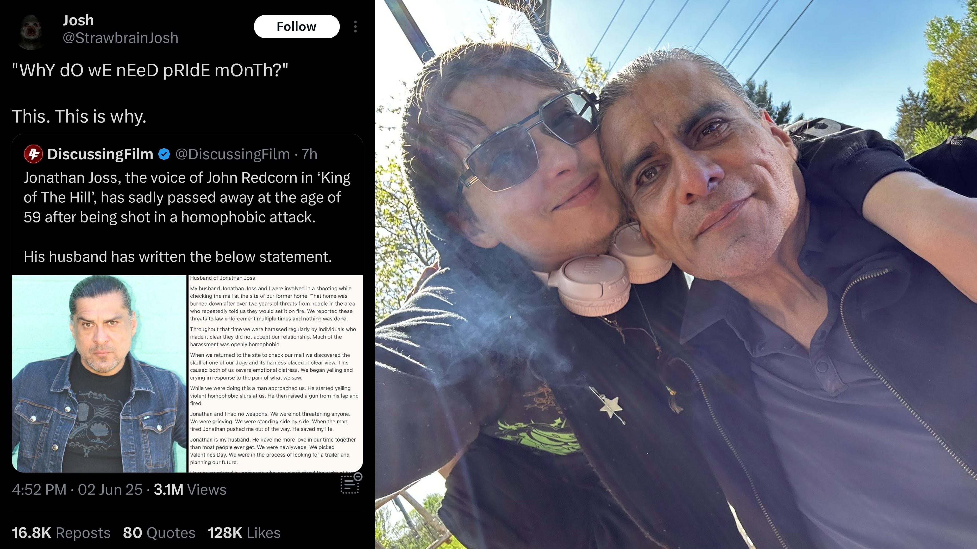 Leftist activists have been spreading unfounded rumors that Jonathan Joss, the former voice actor of “John Redcorn” on “King of the Hill,” was killed in a “homophobic” lynching.