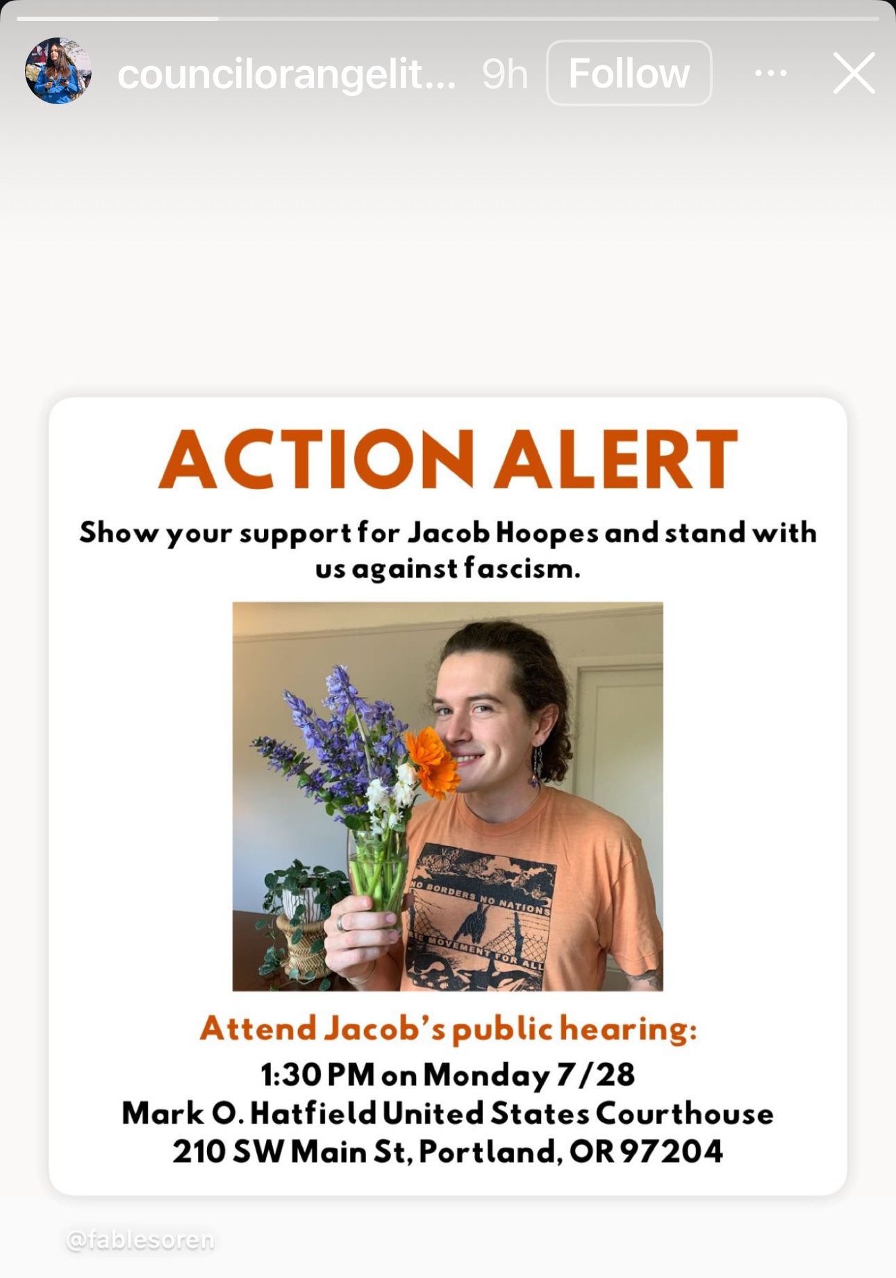Hoopes is well-connected to the radical left in Portland. Two woke city council members have been advocating for him on their social media despite the serious violent allegations against him. Candace Avalos released a video while Angelita Morillo reposted an image asking the public to “stand with us against fascism.” Both misled Portlanders about the nature of the violent crimes Hoopes allegedly committed.
