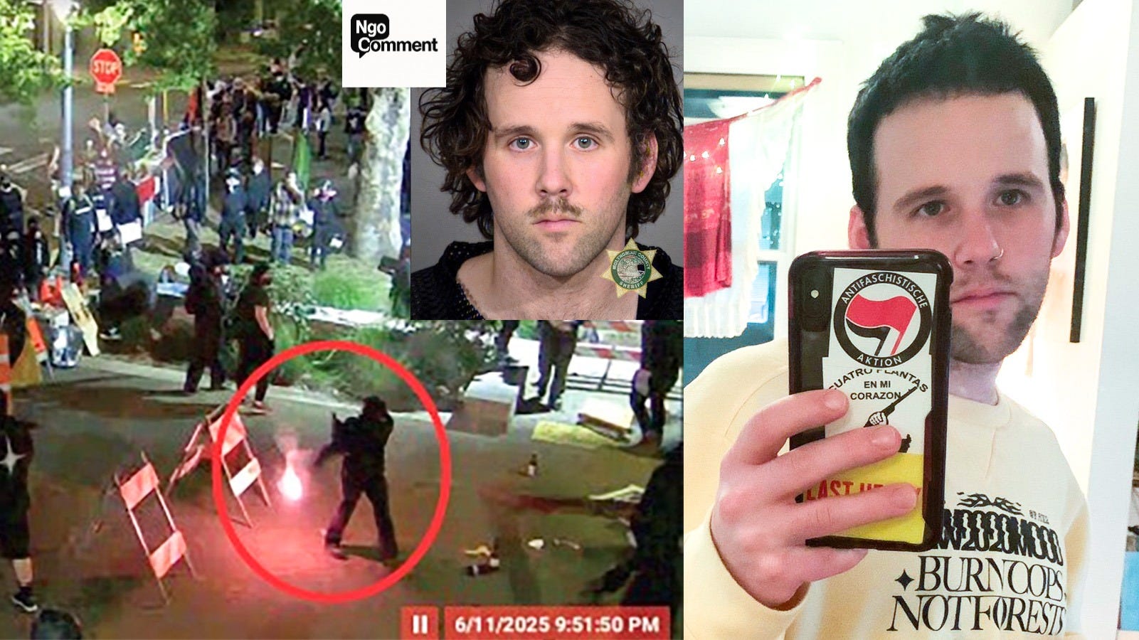 His social media history shows he is a militant BLM activist. He has tried to delete his social media posts showing his links to Antifa. He frequently interacted on X with Portland Antifa violent extremist, podcaster and self-identified journalist Robert Evans.
