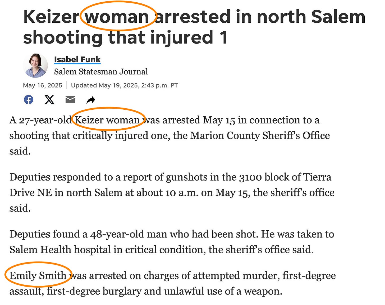 Ngo Comment exclusive: In investigating Watson, I discovered that there was an “Emily Smith” in custody in Marion County, Ore. over an attempted murder in May. The Oregon press reported that a “woman” was arrested for a brutal shooting.