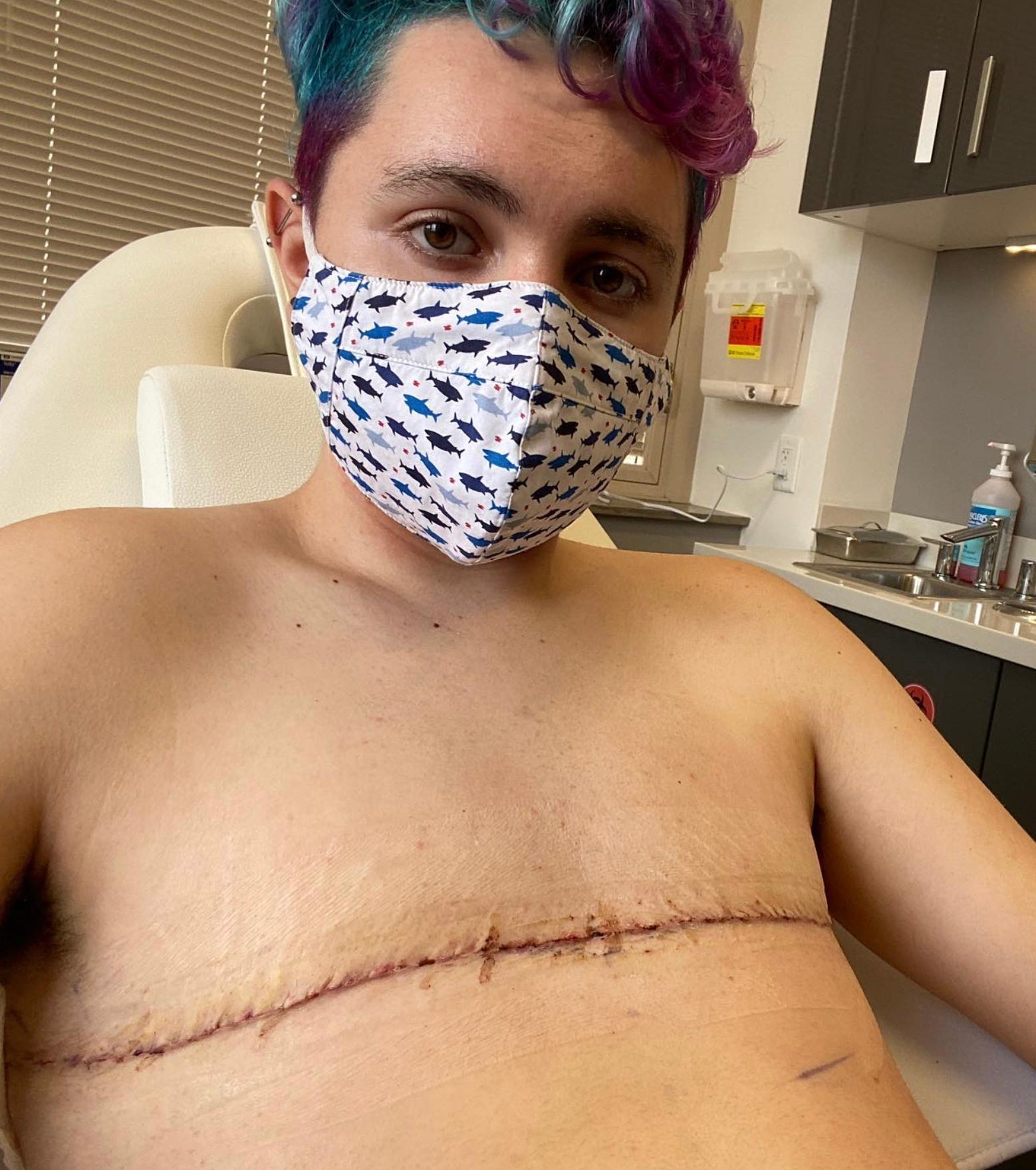 In May 2021, at age 17, Burgess posted about undergoing a double mastectomy that removed not just her breasts but her nipples as well.