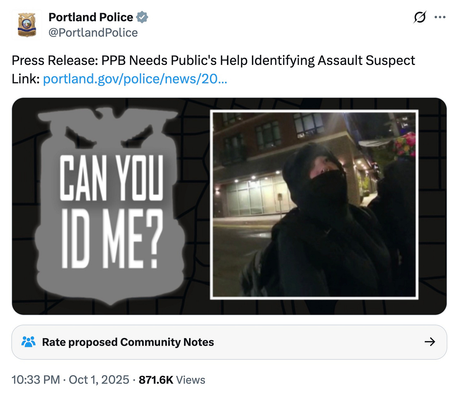 The following day, the PPB released a BOLO about Katie’s attack: “PPB Needs Public’s Help Identifying Assault Suspect.” It was the same empty gesture they’ve repeated for years for me and other victims of Antifa violence.