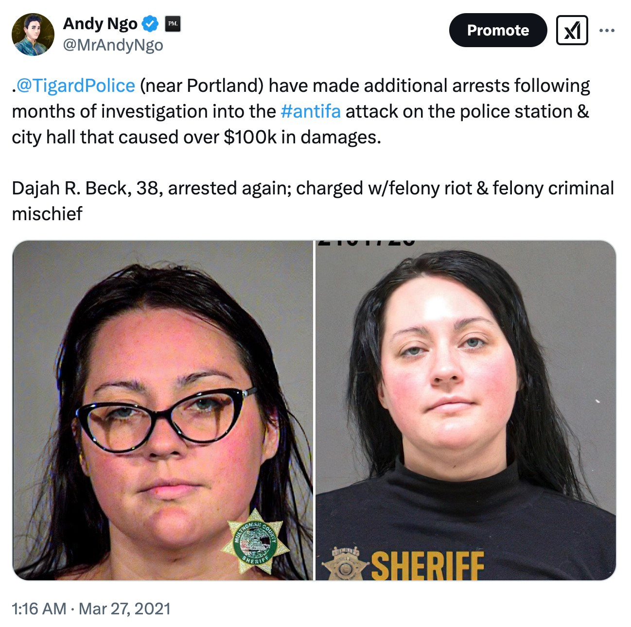 Misinformation about the shooting stems mainly from Antifa member Dajah Beck, who fundraised $155,000 off the shooting, sued the city for alleged injury from a riot arrest and received a large cash settlement. She was one of the four injured in the shooting. Beck was convicted the same year as the shooting of two felonies over a violent Antifa attack in Tigard, Ore. She was arrested again at another illegal street direct action last year in downtown Portland but the case was dismissed.