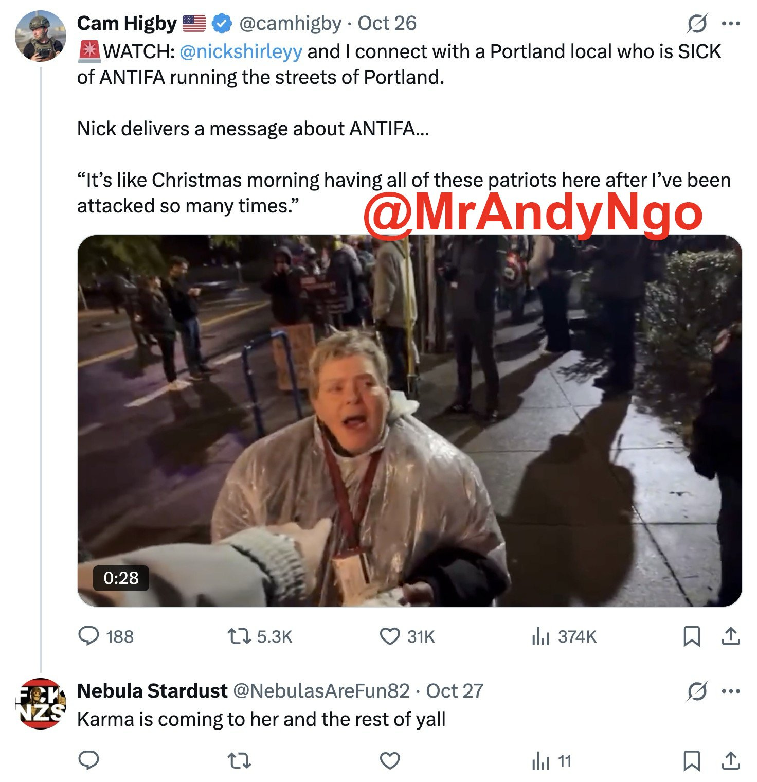 He also posted a threat against an older Portland neighborhood resident voicing criticism of Antifa rioters in south Portland.