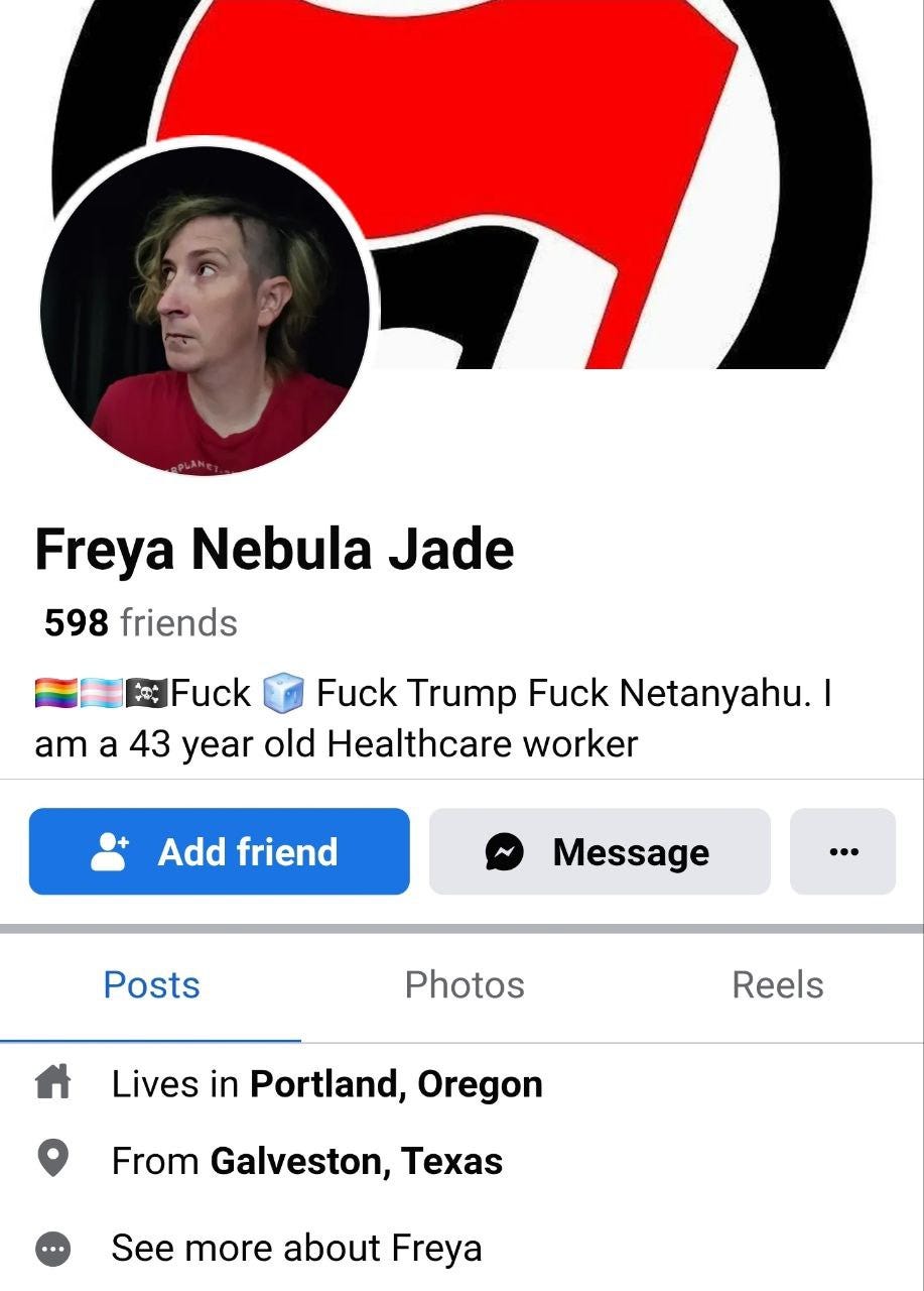 Bitgood, who formerly worked as a healthcare worker at one of the Providence medical centers in Portland and is originally from Galveston, Texas, also has a long history of violent extremist posts under his alias, “Freya.” He regularly used symbols of Antifa with his extremist context and has been accused of rape.